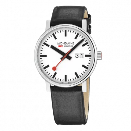 Dieser Zeitmesser aus der Classic-Kollektion zeigt das charakteristische minimalistische Design von Mondaine. Die Armbanduhr verfügt über ein 30-mm-Gehäuse aus poliertem Edelstahl, ein schlichtes, aber schönes weißes Zifferblatt und wird von der ikonischen roten Krone geziert. Das neue vegane Traubenlederarmband in Schwarz mit rotem Innenfutter besteht zu 75% aus pflanzlichem Öko-Verbundmaterial und zu 25% aus recyceltem PET.
