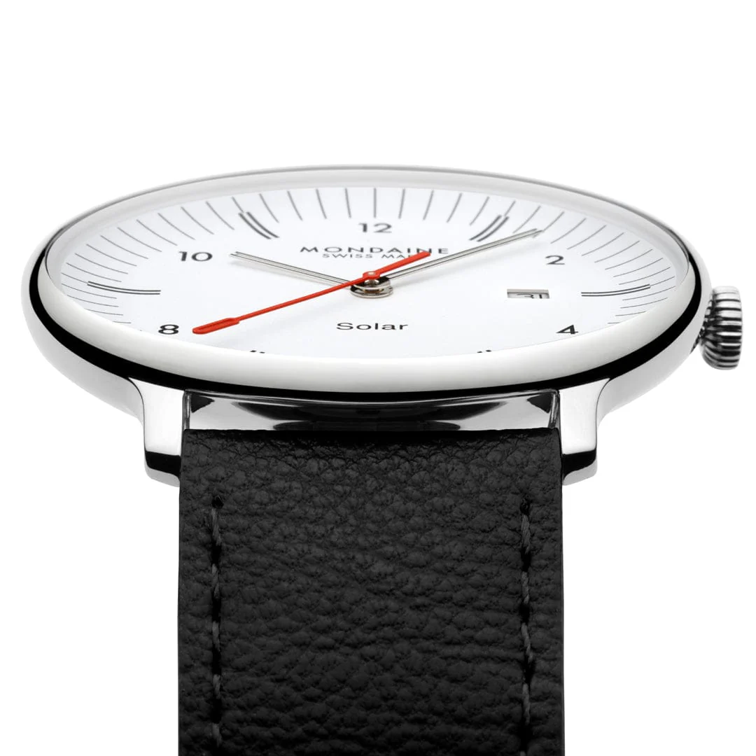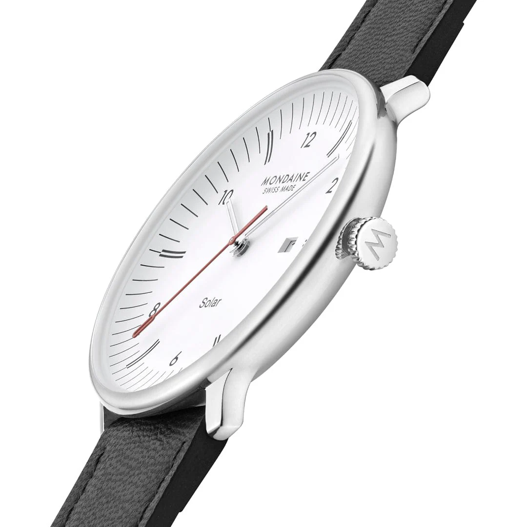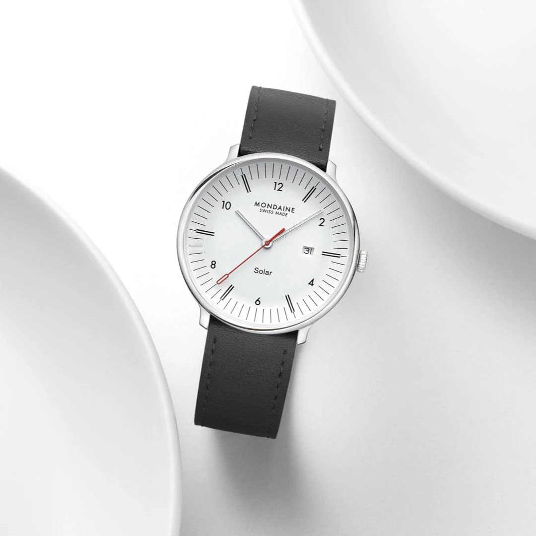 Diese Uhr verbindet zeitloses Schweizer Design mit zukunftsweisender Innovation. Das 41 mm Gehäuse ist aus 316L-Edelstahl mit bis zu 91 % Recyclinganteil gefertigt und wird von einem innovativen Solaruhrwerk angetrieben. Unter dem Zifferblatt befinden sich Solarzellen, die sowohl natürliches als auch künstliches Licht nutzen und die Energie in einer wiederaufladbaren Batterie speichern.