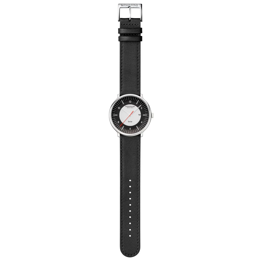 Diese Uhr verbindet zeitloses Schweizer Design mit zukunftsweisender Innovation. Das 41 mm Gehäuse ist aus 316L-Edelstahl mit bis zu 91 % Recyclinganteil gefertigt und wird von einem innovativen Solaruhrwerk angetrieben. Unter dem Zifferblatt befinden sich Solarzellen, die sowohl natürliches als auch künstliches Licht nutzen und die Energie in einer wiederaufladbaren Batterie speichern.