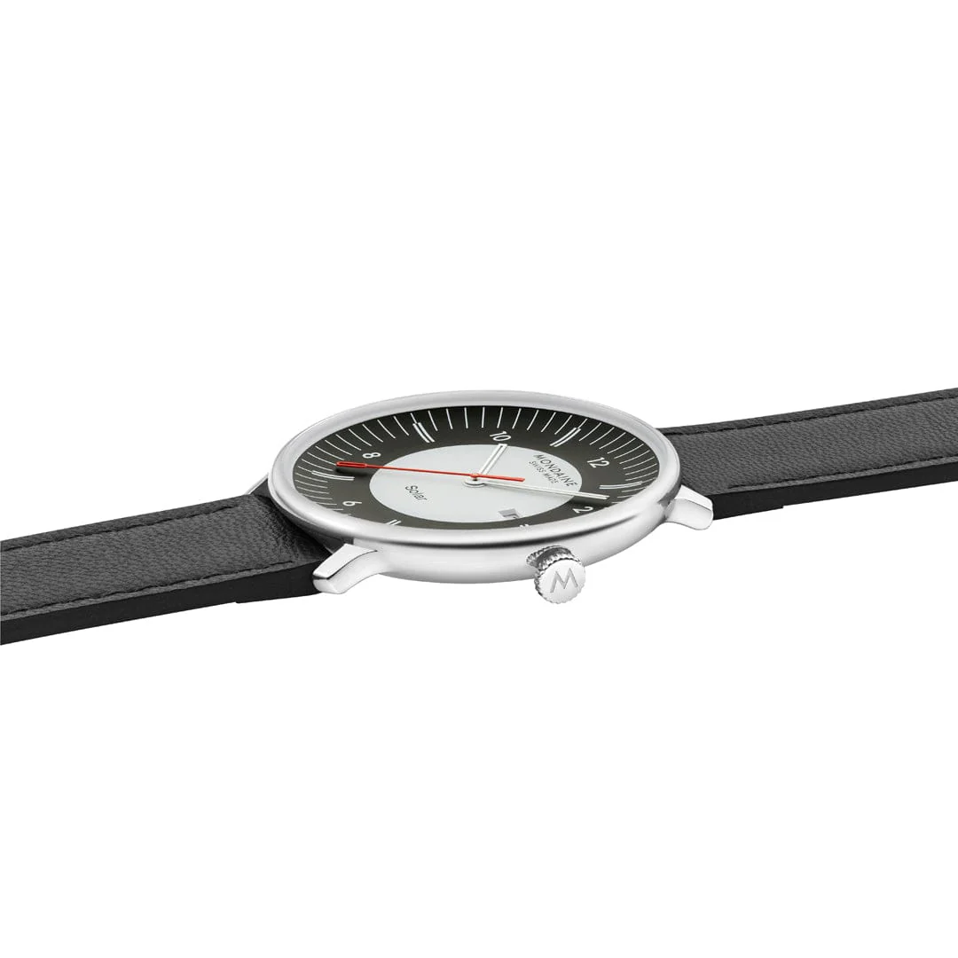 Auch das Zifferblatt spiegelt dies mit einem schwarzen äußeren und einem matt-weissen inneren Kreis wider. Das Datumsfenster und die Wasserdichtigkeit bis zu 5 ATM sorgen für weitere, praktische Funktionalität. Das schwarze, vegane Traubenlederarmband wird aus organischen Weinproduktionsabfällen hergestellt und bietet umweltbewussten Stil. Mit ihrer mühelosen Mischung aus Vintage-Charme und neuesten Innovationen definiert dieser Zeitmesser die nachhaltige Uhrmacherei neu.