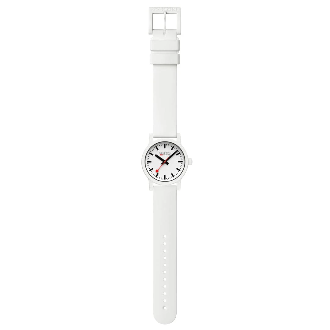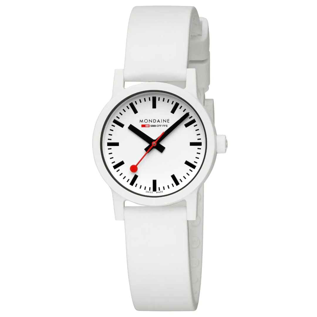 Klar. Minimalistisch. Nachhaltig. Der Kontrast zwischen dem weissen Zifferblatt und dem schwarzen Innenring in dieser 32 mm essence Uhr unterstreicht die Schlichtheit des ikonischen Schweizer Designs. Ihr leichtes, strapazierfähiges Gehäuse aus erneuerbarem Rizinusöl sorgt für hohen Tragekomfort. Mit dem charakteristischen roten Sekundenzeiger, dem Schweizer Quarzwerk und einem Schnellverschluss-Armband ist sie eine perfekte Mischung aus Form, Funktion und Nachhaltigkeit. Ein echtes Statement für alle, denen zeitloser Stil – und die Umwelt – am Herzen liegen.
