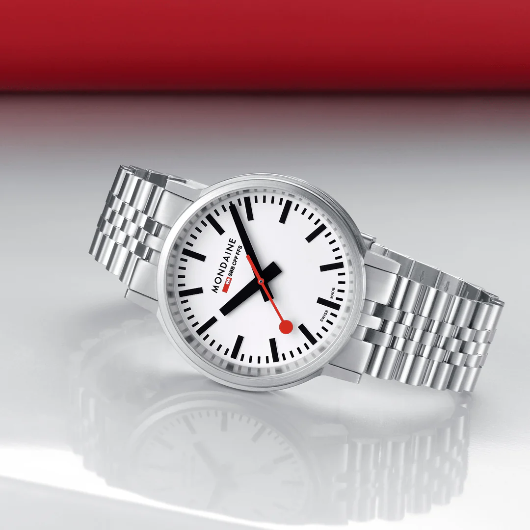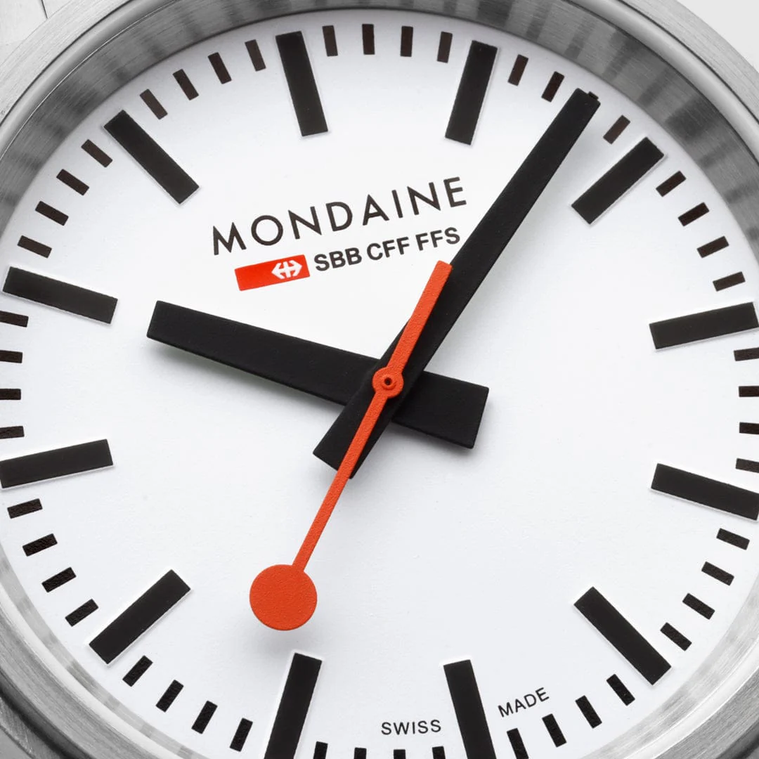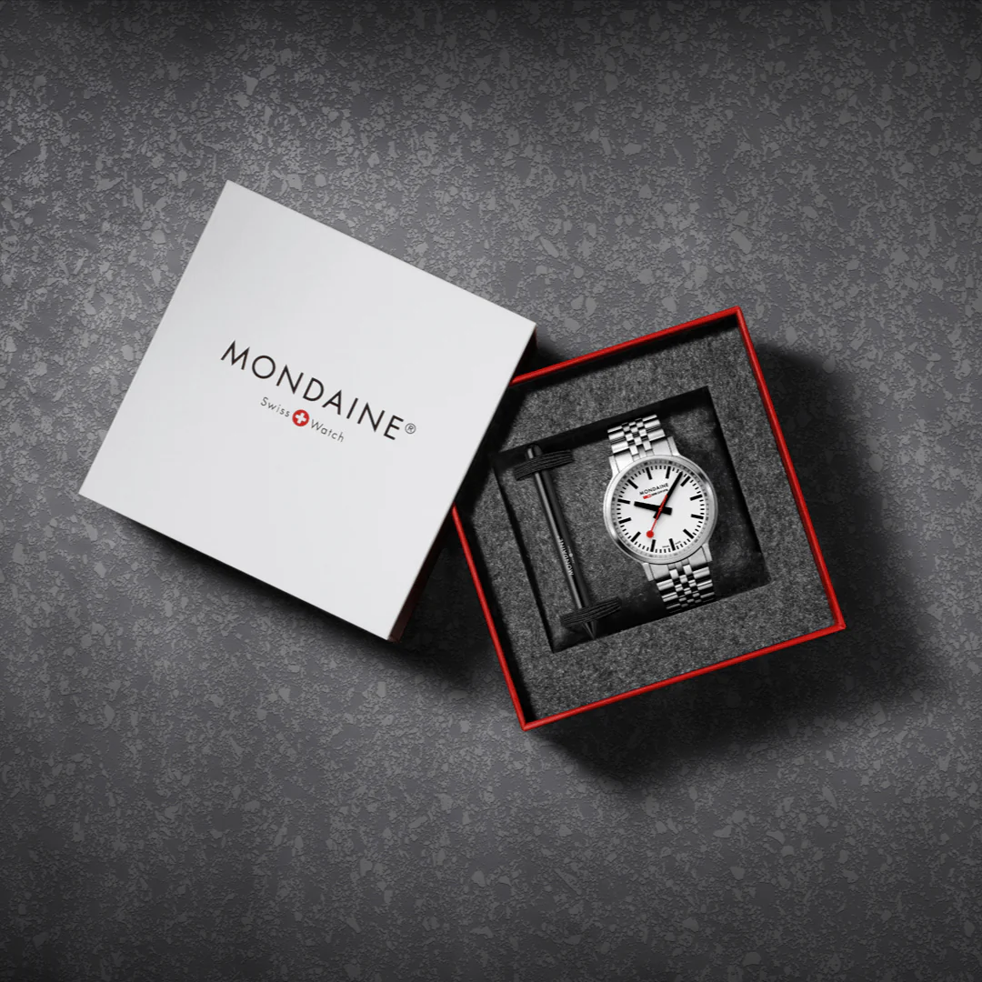 Kollektion: Die stop2go-Kollektion hat nicht nur das minimalistische und zeitlose Design der Schweizer Bahnhofsuhren geerbt, sondern verfügt auch über ein einzigartiges Uhrwerk, das dem dieser ikonischen Uhr ähnelt. Der markante rote Sekundenzeiger der Armbanduhr macht in 58 Sekunden eine volle Umdrehung und wartet dann 2 Sekunden, wenn er die Stunde erreicht, damit der Minutenzeiger elegant auf die nächste Minute springen kann. Mit ihrer starken Verbindung zur Geschichte der Schweizer Bahnhofsuhr ist die stop2go eine echte Hommage an Mondaines Schweizer Herkunft und Design. Dieser außergewöhnliche Zeitmesser lädt dazu ein, ganz wie er selbst, die Zeit für einen Moment anzuhalten, in einer Welt, die nie stillzustehen scheint.